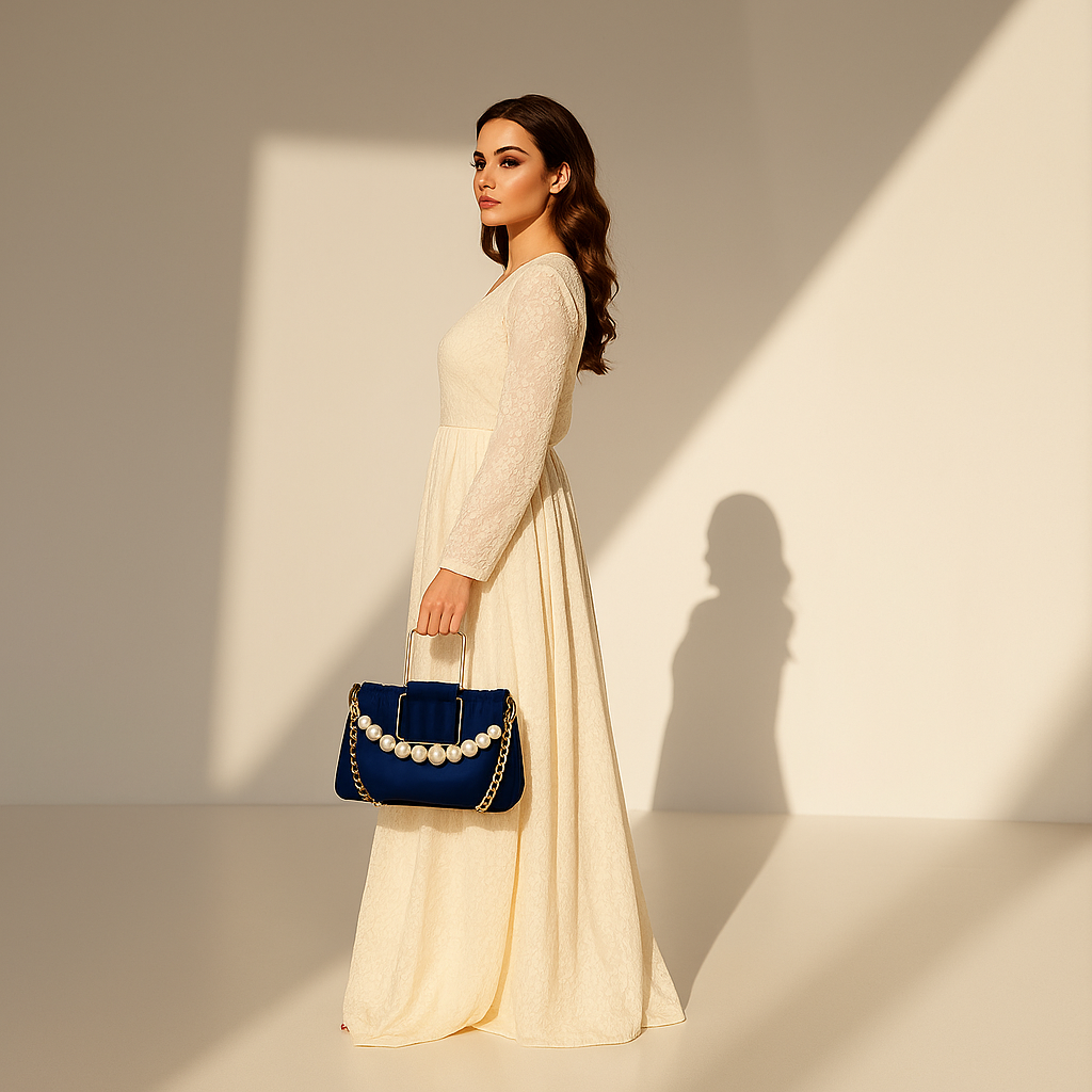 Meet the Pearlfect Muse — where timeless elegance meets modern flair. With its ruched silhouette, luxurious gold chain, and statement pearl detailing, this bag isn’t just an accessory — it’s a whole aesthetic. Whether you're dressing up for a night out or elevating your everyday look, this piece brings the perfect blend of charm, class, and a hint of drama.